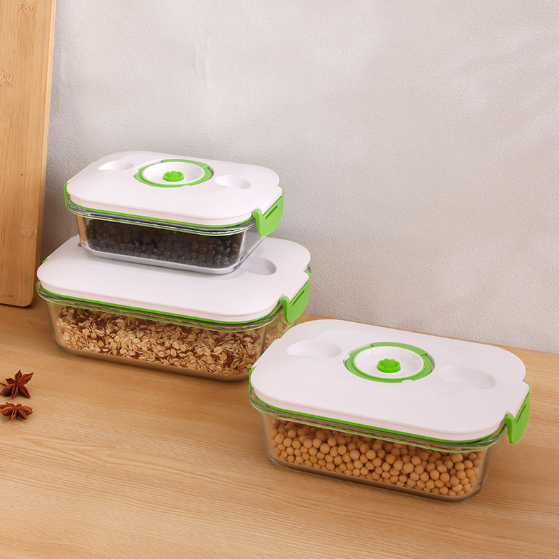 The eco-friendly glass is carefully selected, featuring a crystal clear, smooth and large-diameter design for easy cleaning. It is made of high-temperature resistant material and can be directly used in a microwave oven for heating. It is safe, odorless and retains the original flavor of food. The silicone rubber sealing ring is designed to be detachable, making cleaning more convenient and effectively preventing bacterial growth. Vacuum fresh-keeping technology extends the preservation period of food ingredients, reduces waste, and is suitable for long-term use in households.